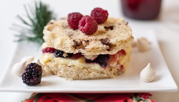 Misture tres colheres (chá) de água com o rum e regue o interior do panetone.